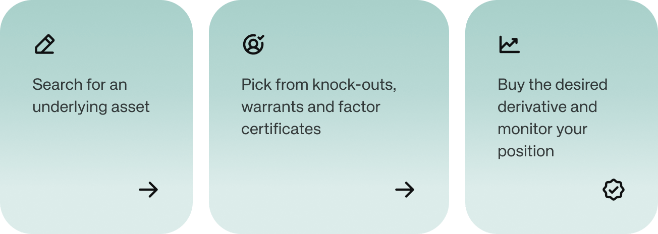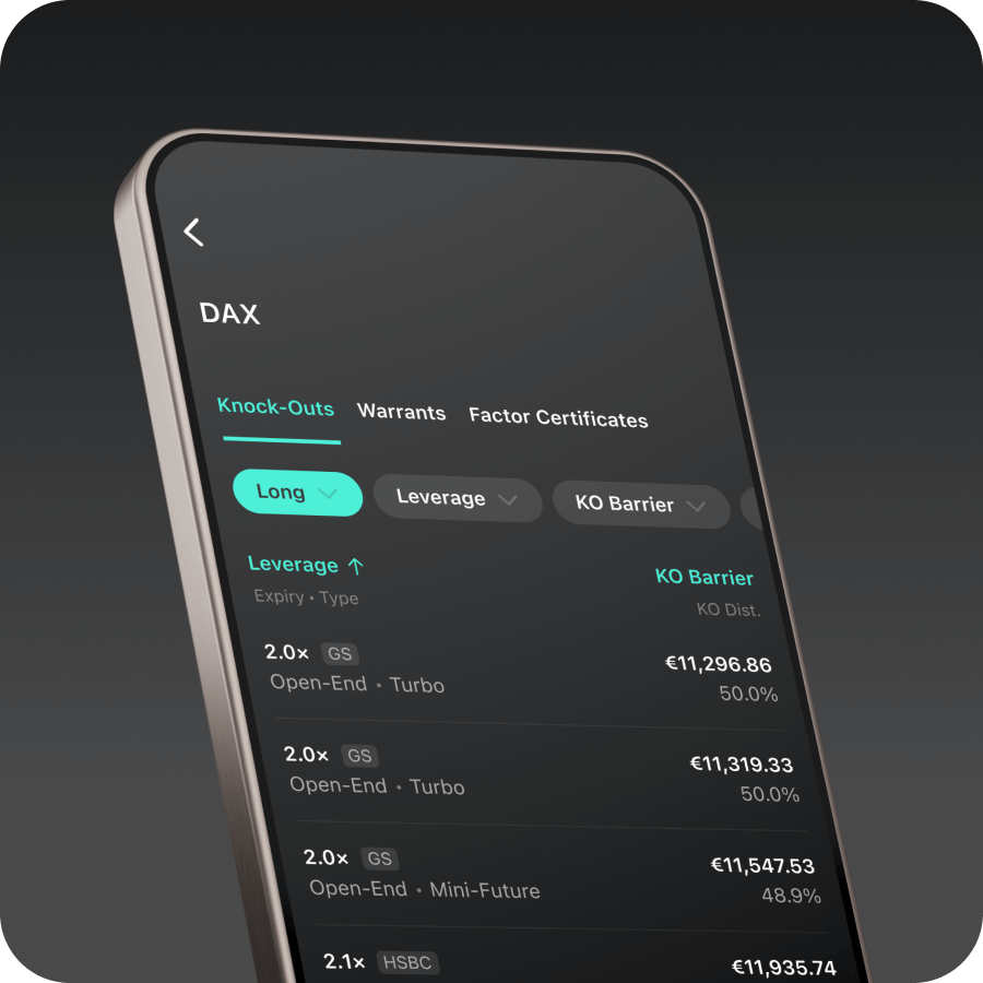Short, long, hedging: Implement all your investment ideas now with over 625,000 derivatives and a trading flat rate.
