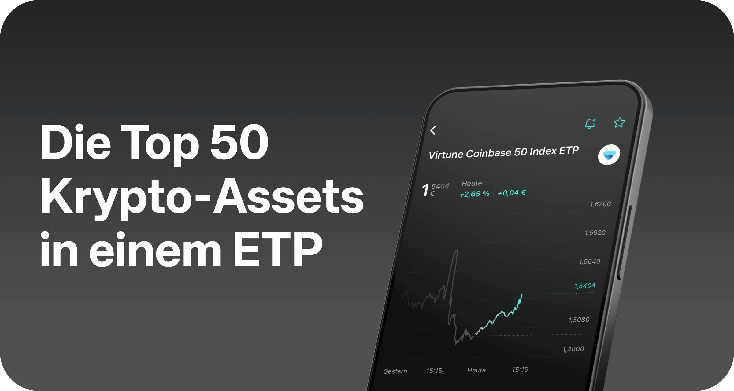 Welche Kryptowährungen sich auf Dauer neben Bitcoin etablieren werden, hängt stark von ihren Einsatzmöglichkeiten und ihrer Effizienz ab. Auch wegen dieser Ungewissheit bergen Krypto-Assets hohe Risiken. Wenn Sie jedoch an das langfristige Potenzial digitaler Vermögenswerte glauben und einen strukturierten, diversifizierten Ansatz bevorzugen, bietet eine breite Marktstreuung eine überzeugende Lösung. Somit müssen Sie sich die aussichtsreichen Kandidaten nicht einzeln ins Portfolio holen: Mit dem Virtune Coinbase 50 Index ETP (Exchange Traded Product) investieren Sie breit gestreut in die 50 bedeutendsten Coins. Und damit Ihr Krypto-Portfolio keine Schlagseite bekommt, ist das Gewicht der einzelnen enthaltenen Kryptowährungen auf maximal 50 % begrenzt.