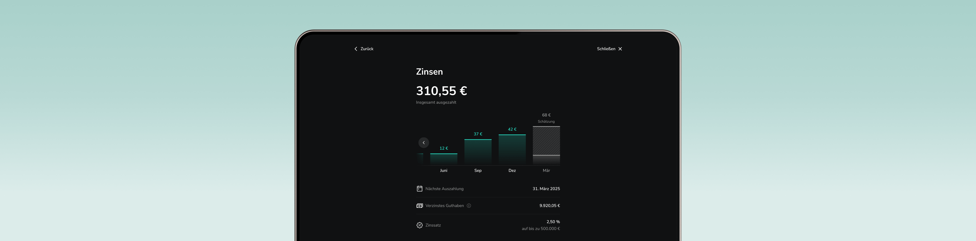Jederzeit den Überblick über Ihr Guthaben und Ihre Erträge behalten? In der optimierten Guthaben-Übersicht erhalten Sie jetzt Details zu Ihrem Guthaben und eine Übersicht zu angesammelten Zinserträgen sowie Ausschüttungen.
